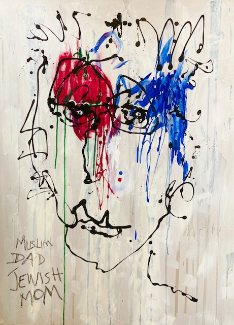 MUSLIM DAD JEWISH MOM: Acrylic on canvas 35.5″x48″ (Large painting)